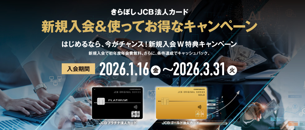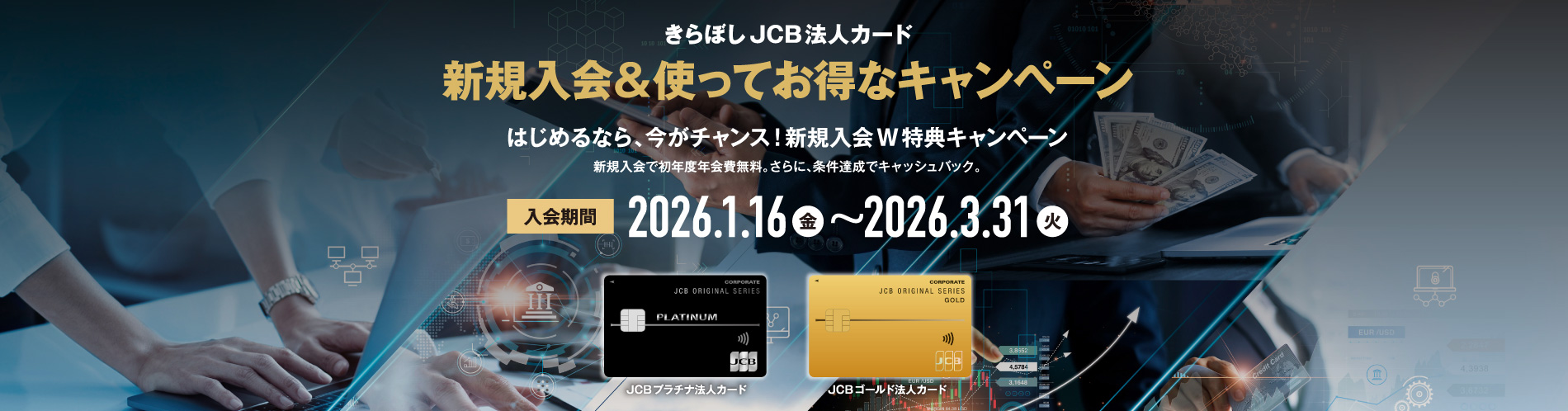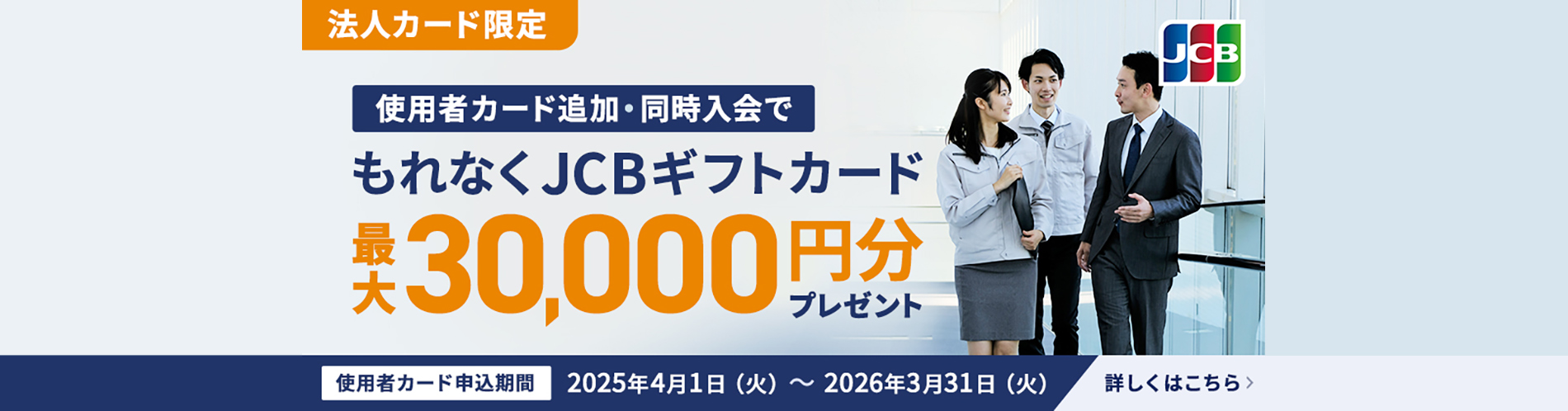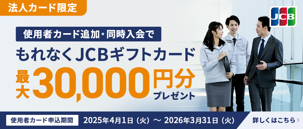 経営者・個人事業主の皆様の業務効率化、経費削減に役立つJCB法人カードのご案内です。