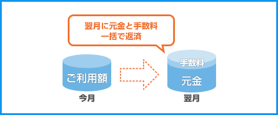毎月15日に締め切り、元金と手数料を翌月10日に一括で支払う方法です。